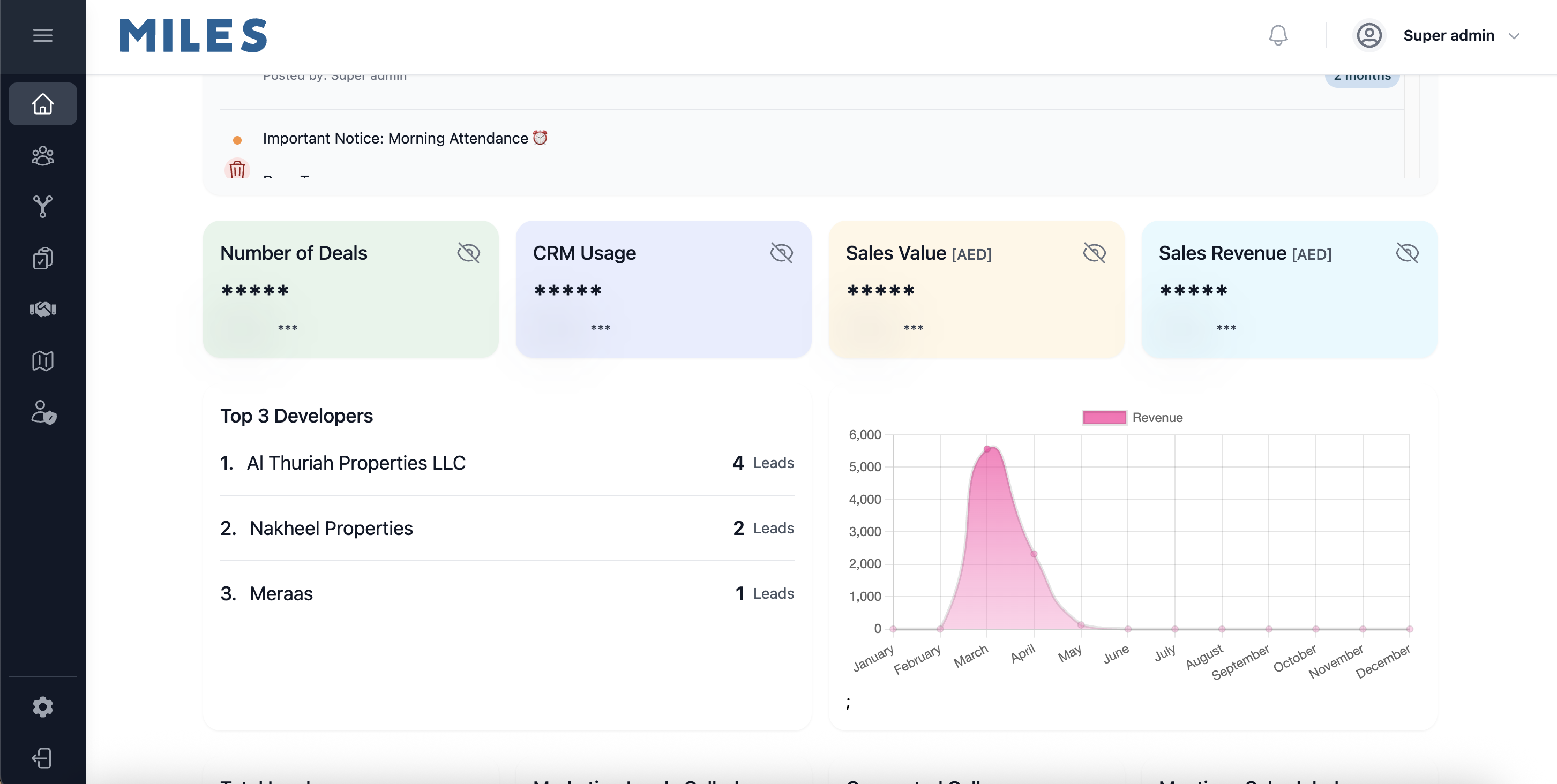 MILES CRM is a powerful, user-friendly Customer Relationship Management platform designed specifically for businesses that demand speed, efficiency, and growth. Whether you're a startup or an established enterprise, MILES CRM helps streamline your sales, marketing, and service operations, making it the perfect CRM for businesses.